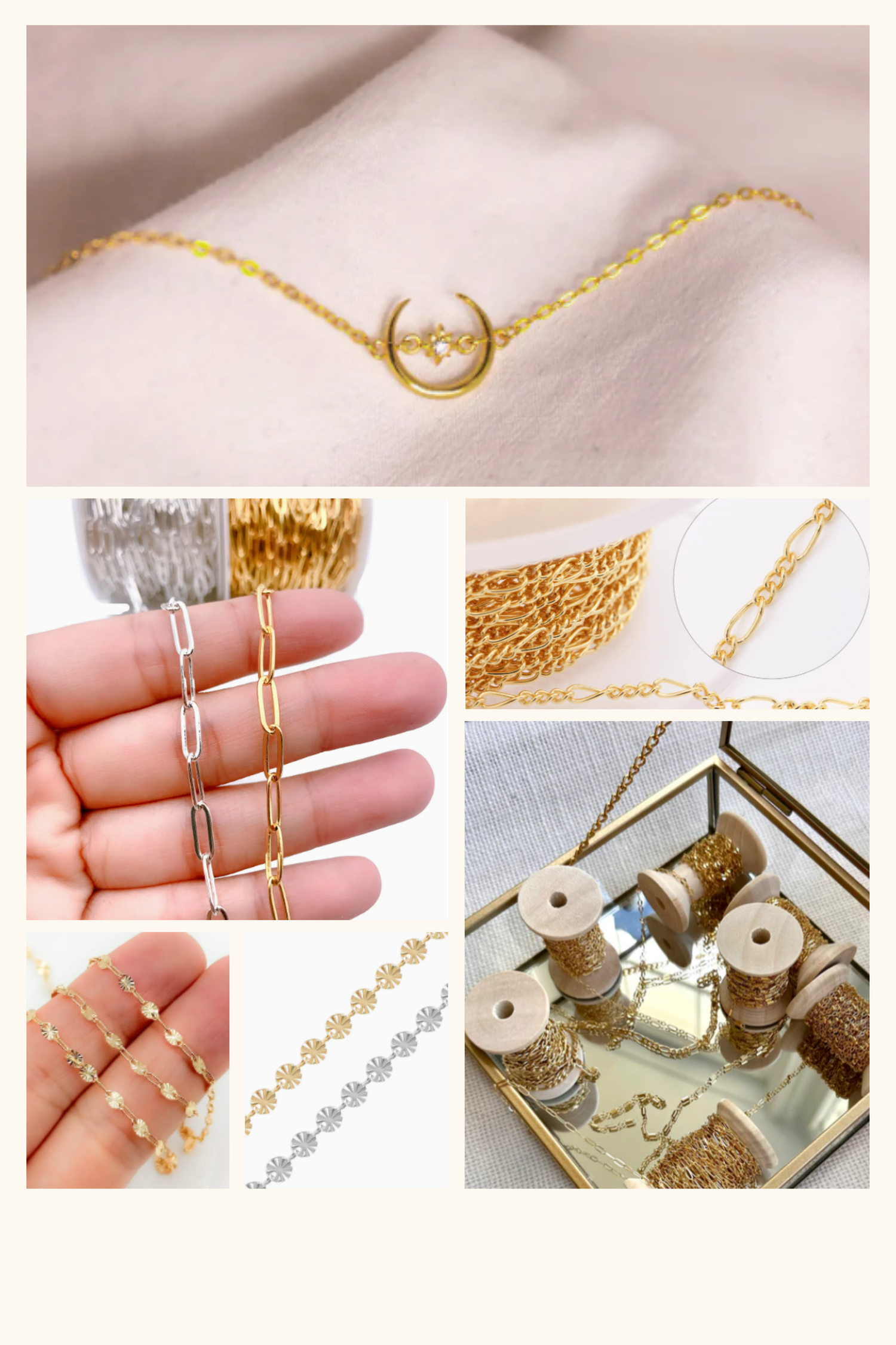 Chains offer endless styling possibilities, from simple necklaces and bracelets to bold hand chains and belly chains.
